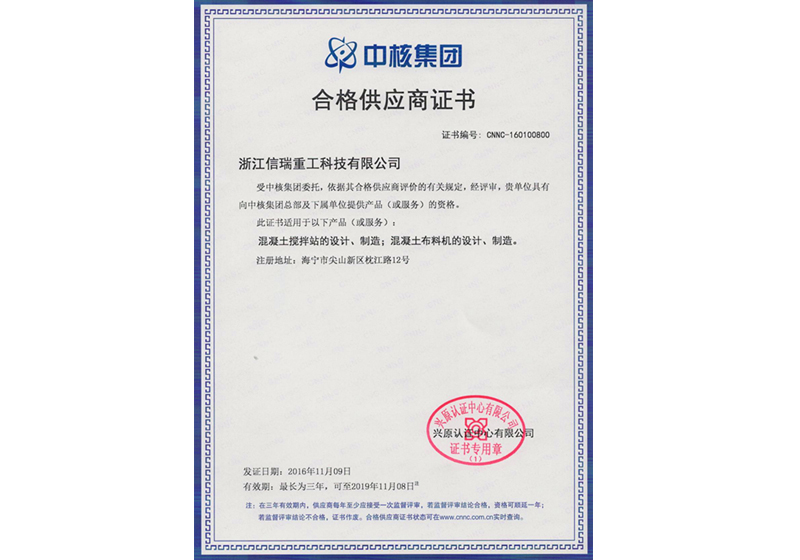中核合格供應(yīng)商證書